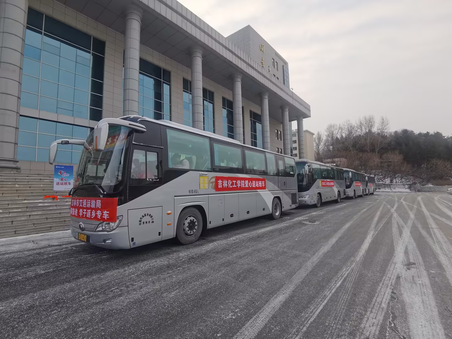 此次送站活动每天设置5个集中送站时间段,由大巴车将学生统一从学校送至吉林市火车站;“同学们,准备发车了,请系好安全带,提前祝大家春节快乐!”,周到暖心的安排获得学生及家长的广泛好评,学生和家长纷纷表示,学校想学生所想、急学生所急,温暖了化院学子的归家旅程。