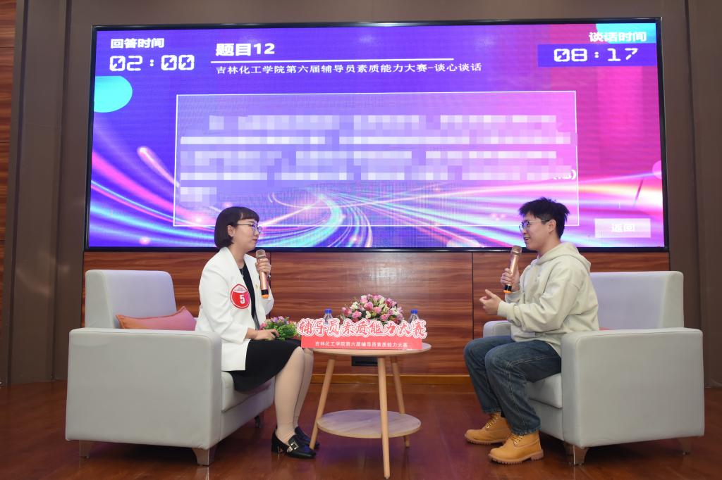 本届大赛对标国赛赛事设置,分为初赛和决赛两个阶段,初赛为基础知识测试,决赛包括案例研讨、谈心谈话两个环节。在初赛环节中脱颖而出的14位优秀辅导员晋级决赛。在决赛现场,参赛辅导员在案例研讨和谈心谈话环节中,充分展示了在思想理论教育和价值引领、党团和班级建设、学风建设、学生日常事务管理、心理健康教育与咨询工作、网络思想政治教育、校园危机事件应对、职业规划与就业创业指导、理论和实践研究等辅导员九大工作职责方面的综合知识水平,以及结合自身学生工作经验对学生成长、树立理想信念的教育引导能力,展示出了扎实的理论功底、出色的职业能力和深厚的专业素养。