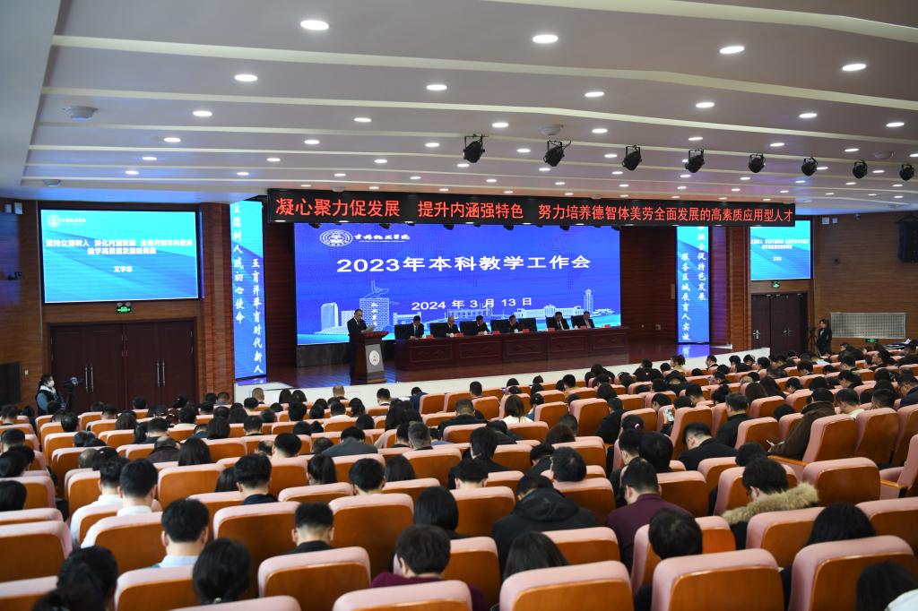 王立国围绕落实立德树人根本任务,构建思政育人新格局,强化专业内涵建设,完善应用型人才培养体系,推动教育教学数字化转型,做好审核评估工作等方面作题为《凝心聚力促发展 提升内涵强特色 努力培养德智体美劳全面发展的高素质应用型人才》工作报告,同时科学部署今后一个时期教育教学工作。