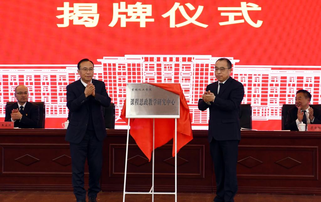 蔡立峰宣读《关于成立课程思政教学研究中心的决定》《吉林化工学院第三届课程思政教学名师评审结果》《2023年度课程思政示范专业评选结果》《2023年度课程思政示范课程及示范教学团队评选结果》。李士阳宣读《关于表彰在专业建设、课程建设中做出突出贡献的先进个人的决定》。