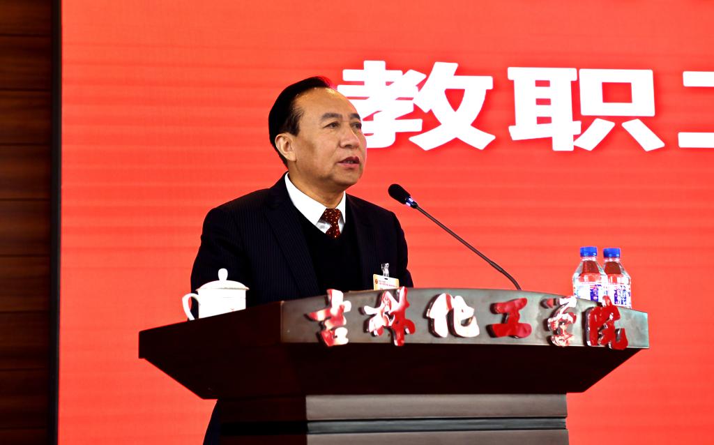 党委副书记李士阳主持会议并强调,要更加紧密地团结在以习近平同志为核心的党中央周围,坚定战略自信,保持战略定力,凝聚共识、团结拼搏、并肩前行,在学校党委的坚强领导下,以实干为“主旋律”,全力完成今年学校发展目标任务,共同为实现圆梦大学梦想、实现学校高质量发展、助力教育强省建设而努力奋斗。