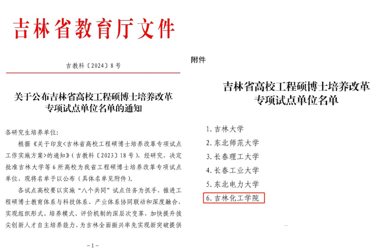 近日,吉林省教育厅发布《关于公布吉林省高校工程硕博士培养改革专项试点单位名单的通知》,我校成功获批吉林省高校工程硕博士培养改革专项试点单位,标志着我校在高层次应用型创新人才培养方面迈出重要步伐。