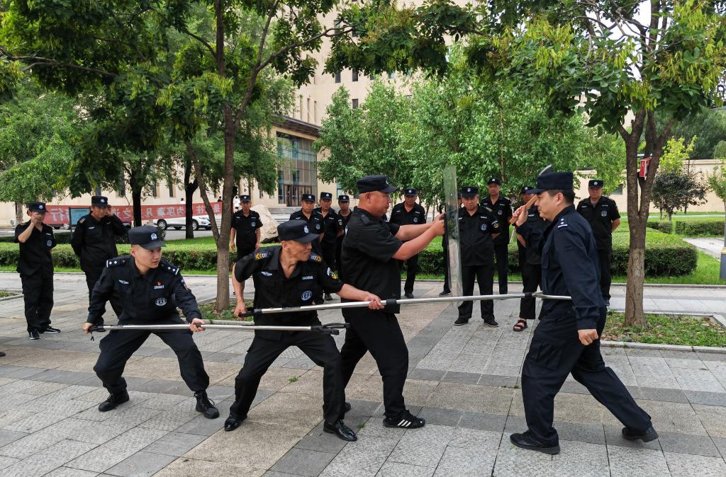 演练前,吉林市公安局警官结合自身处置突发事件经验,详细讲解和演示防暴器械的使用及动作要领,以及面对突发事件的应急处置措施和自我保护技能。警官围绕锁腿器、防爆盾和钢叉的作用和使用方法、盾叉三人组作战技术等内容进行了实战演示。通过现场指导,安保人员进行作战训练和防暴恐现场模拟对抗。