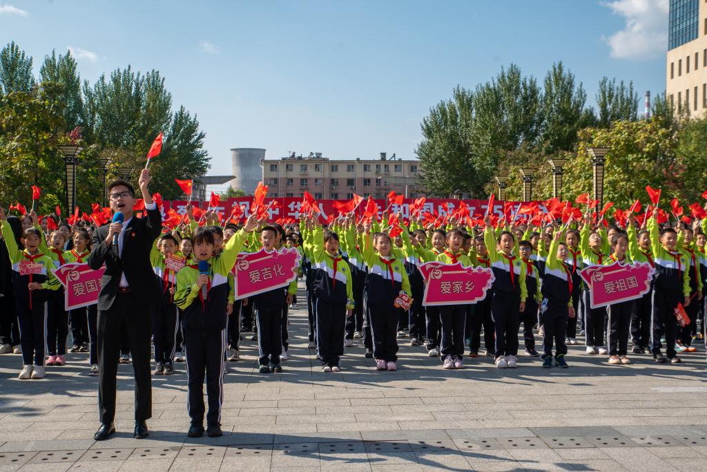 9月26日,在吉林化工学院励志广场,300余名大学生、小学生倾情演唱《歌唱祖国》,以激昂的旋律,动情的歌声,诉说着对祖国母亲的热爱与眷恋,庆祝中华人民共和国成立75周年。