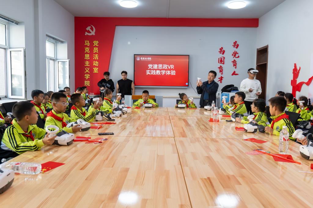 在 “行走的思政课”实践教学环节,吉化第一实验小学学生分别来到吉林化工学院化工类仿真实训装置基地、党建思政VR实践中心、机器人实验室、校史馆、吉林省高校中华优秀传统文化传承基地、分析测试中心等地,进行沉浸式体验,了解吉林化工学院在为国家、为“吉化”培养输送化工人才方面取得的丰硕成果,感受吉林化工学院的现代气息以及大学生们的校园生活。