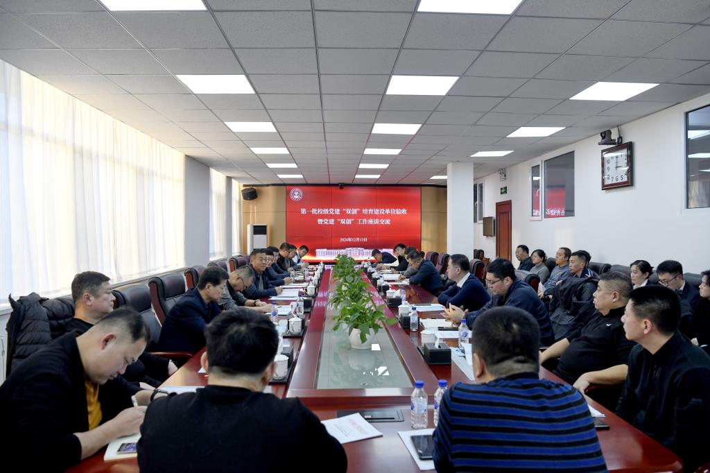 第一批校级党建“双创”培育建设单位进行成果汇报。与会人员对其进行验收评议,并围绕如何推动学校党建“双创”工作提质增效交流研讨。
