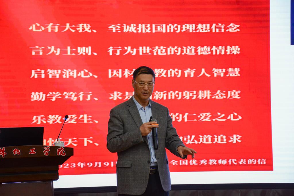 蔡立峰在主持会议时强调,教师要从教好每一个学生、上好每一堂课开始,要心有大我、至诚报国,争做有大情怀的教育家;要言为士则、行为世范,争做有大德性的教育家;要启智润心、因材施教,争做有大智慧的教育家;要勤学笃行、求实创新,争做有大学识的教育家;要乐教爱生、甘于奉献,争做有大仁爱的教育家;要胸怀天下、以文化人,争做有大追求的教育家。全体教师要认真学习、感悟报告内容,进一步思考如何深入挖掘各门课程蕴含的思政元素,充分发挥教师队伍“主力军”作用,提高我校立德树人成效和人才培养质量。