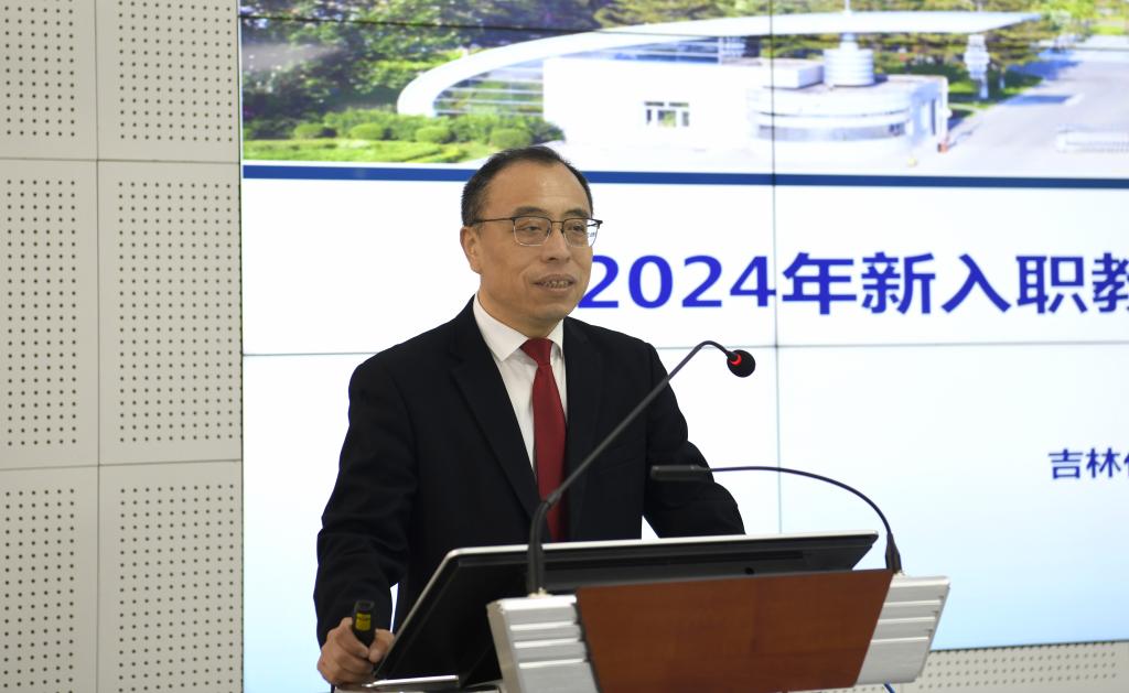艾学忠介绍了学校的发展历程、基本情况、办学优势特色,并结合自身从教三十多年的工作经历与体会,与新教师就高校教师职业规划进行了经验分享。他强调,作为一名合格的高校教师,一是要坚定正确的政治立场;二是要努力钻研业务;三是要端正自身品行。他鼓励新教师们要树立远大目标,在教学中不断创新,在科研上勇于探索,努力将个人职业价值融入到学校发展之中,积极投身推进学校特色高水平应用型大学建设。要大力弘扬教育家精神,在师德师风上做表率,在业务能力上争上游,在创新发展上有突破。希望广大教师牢记“为党育人、为国育才”的初心使命,秉承“严谨、勤奋、求实、创新”的校训精神,发扬传统、脚踏实地,为吉林全面振兴贡献智慧和力量。