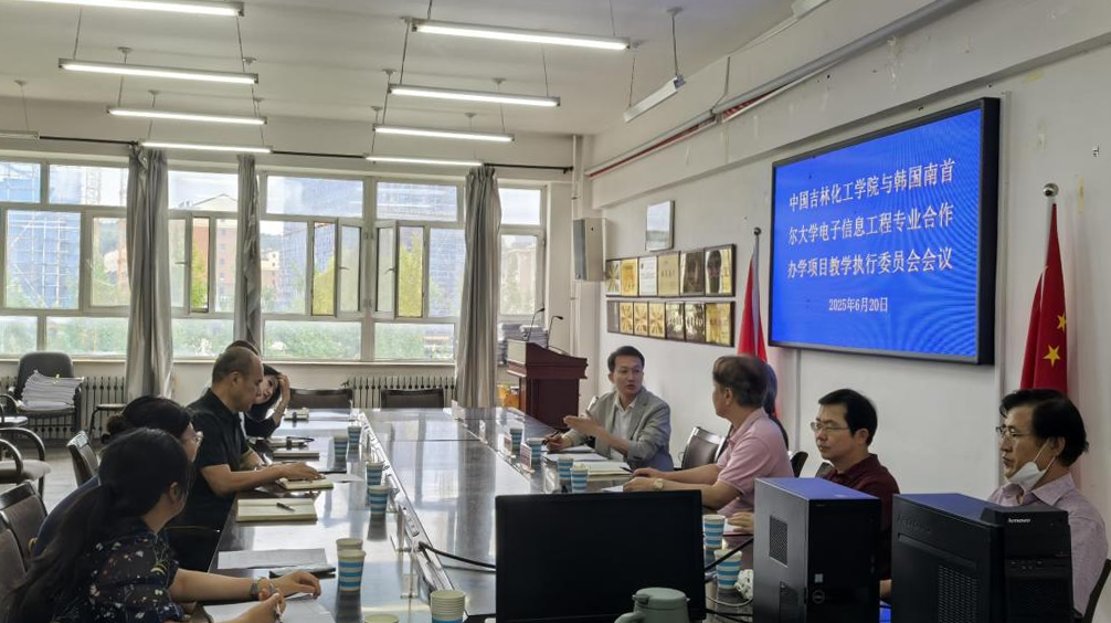 在教学执行委员会会议中,本学期在我校授课的南首尔大学电子工学科李承大等四位教授和我校信息与控制工程学院专业课教师就专业课程的国际化融合、教学质量监督体系的共建以及学生实践能力培养方案等细节进行了充分研讨,达成多项共识,聚力打造兼具两校特色与国际视野的优质教育项目。