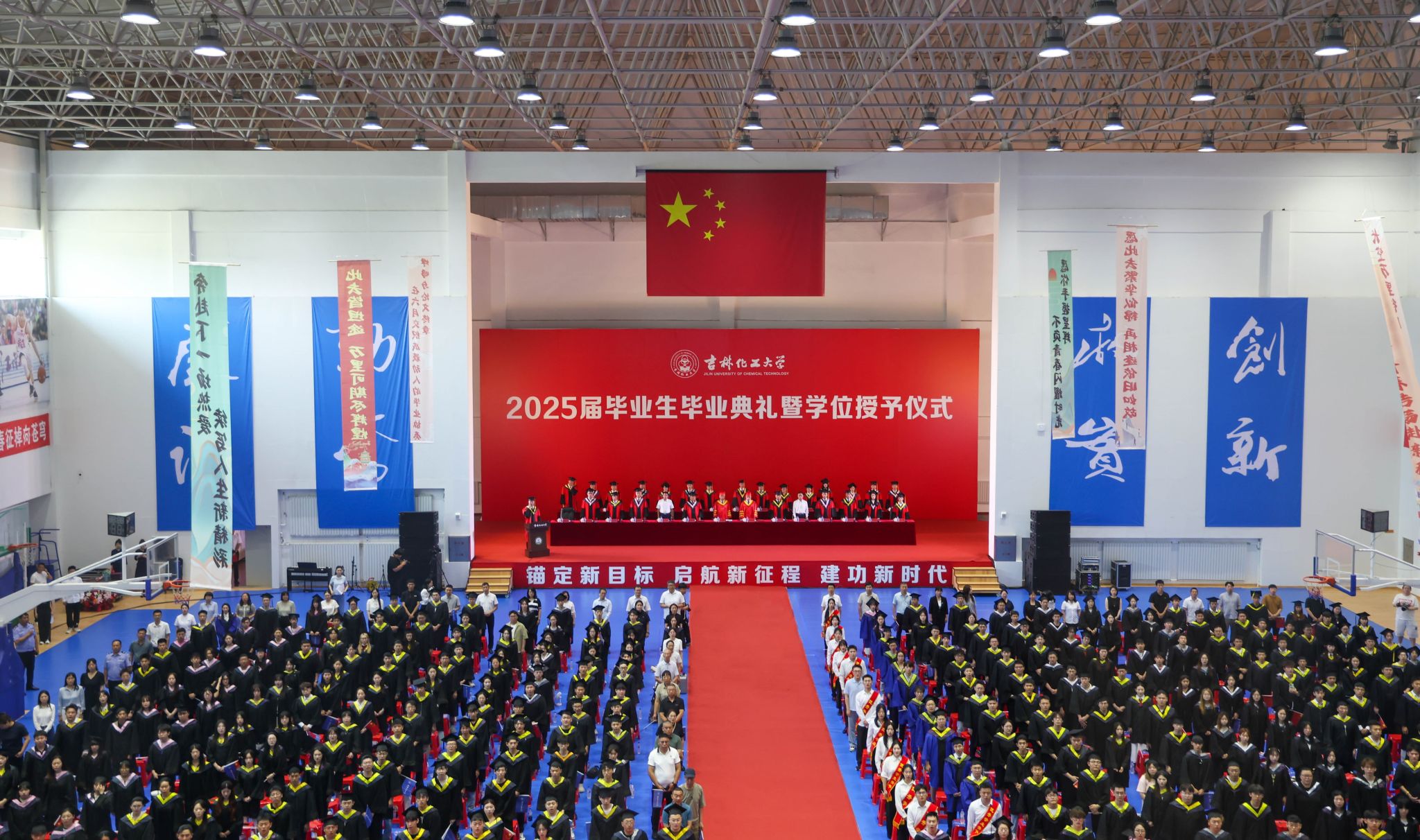 凤凰花开,骊歌又起。6月25日,吉林化工大学2025届学生毕业典礼暨学位授予仪式在龙潭校区体育馆举行。学校党委书记宋春辉,校长艾学忠,优秀校友代表吉林化纤集团有限责任公司党委书记、董事长宋德武,吉化集团吉林市星云化工有限公司董事长于广臣等出席典礼,共同见证我校5375名学子圆满完成学业,踏上奋斗新征程,开启人生新篇章。典礼由党委常委、副校长孙大志主持。