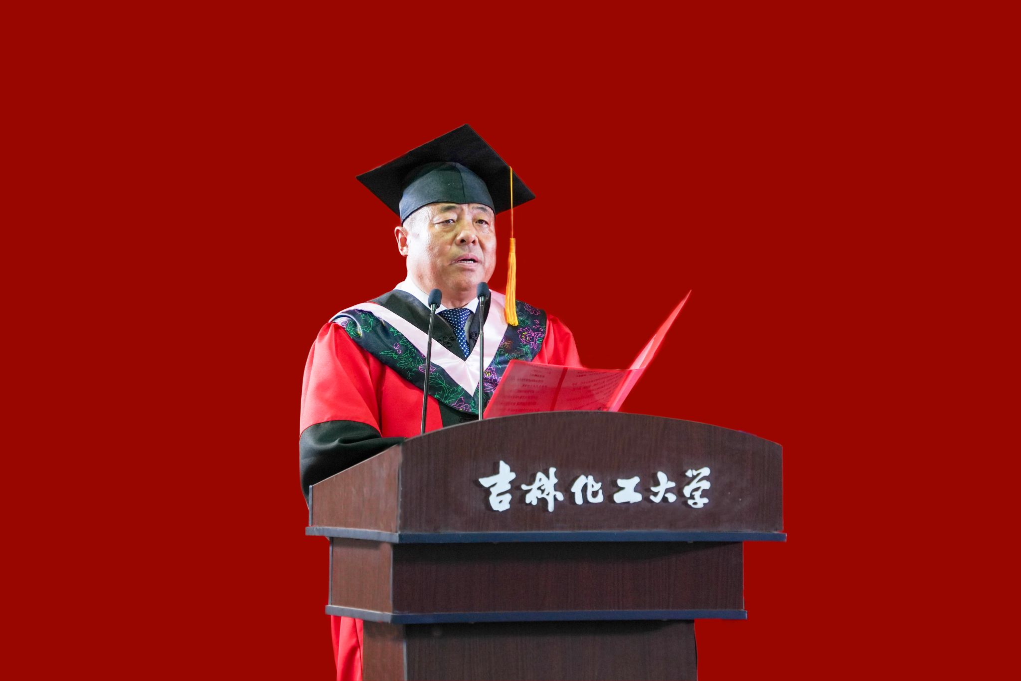 艾学忠为毕业生代表正冠扶苏并授予学位,为优秀校友代表于广臣、宋德武颁发纪念版毕业证书。他在讲话中对毕业生提出四点希望,要以科技报国之心擎起时代旗帜。将个人理想融入中国式现代化的壮阔征程,让青春在科技自立自强的熔炉中百炼成钢。要在新能源材料、智能化工、生物医药等战略领域勇闯“无人区”,在突破“卡脖子”技术的攻坚中智探“创新峰”,以吉化智慧赋能强国建设,以绿色科技守护美丽中国,书写新时代工程师的使命担当。要以精益求精之魂传承工匠精神。要弘扬学校扎根工程教育六十七载的深厚底蕴,在产业一线中锤炼“毫厘不差”的严谨,在技术攻关中秉持“千万锤成一器”的执着。无论身处实验室还是生产车间,始终以“显微镜下见功力”的追求锻造大国工匠的脊梁。要以坚韧不拔之志开拓人生疆界。面对技术瓶颈的壁垒、产业变革的浪潮、人生际遇的起伏,当以吉化人特有的韧性与智慧,于挑战中捕捉机遇,在困境中淬炼成长。要以守正创新之姿引领未来风潮。既要坚守科学伦理与工程规范的底线,敬畏自然、尊重生命;更要敢于突破思维藩篱,拥抱学科交叉融合,探索前沿未知。在传承中锐意求新,在变革中坚守正道。以批判性思维洞察本质,以创造性思维开辟新局,成为定义未来、塑造变革的先行者。