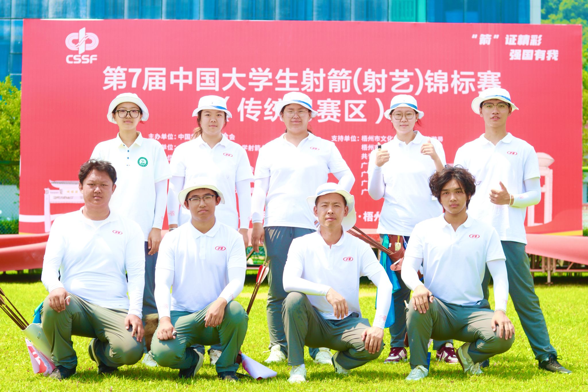 日前,第7届中国大学生射箭(射艺)锦标赛传统弓比赛在广西梧州落下帷幕。本次赛事由中国学生体育联合会主办、中国学生体育联合会大学射箭(射艺)分会执行,广西梧州体育训练基地承办。其举办旨在弘扬传统射箭文化,促进大学生体育运动发展。赛事设置个人排名赛、个人淘汰赛,团体排名赛、团体淘汰赛,混合团体排名赛、混合团体淘汰赛项目。来自清华大学、复旦大学等42所高校的350余名运动员参赛。学校射艺队派出8名运动员参赛,经过激烈比拼,最终获得2枚银牌、1枚铜牌、1项第四名的优秀成绩。