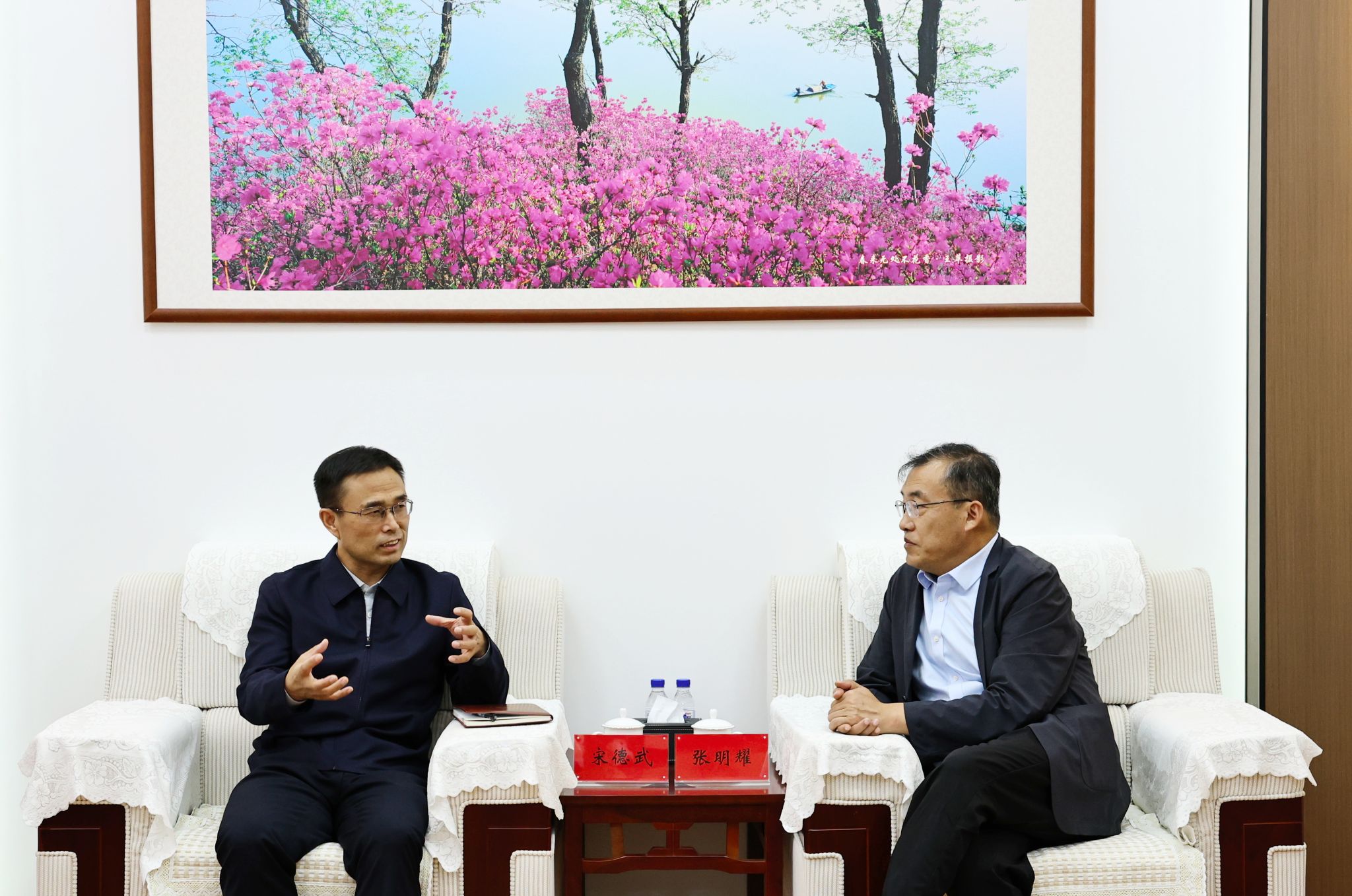 9月18日,学校党委书记张明耀在办公楼会见了来访的吉林化纤集团有限责任公司董事长宋德武一行。双方围绕进一步推动产学研深度融合,共同服务地方经济发展等方面进行交流。