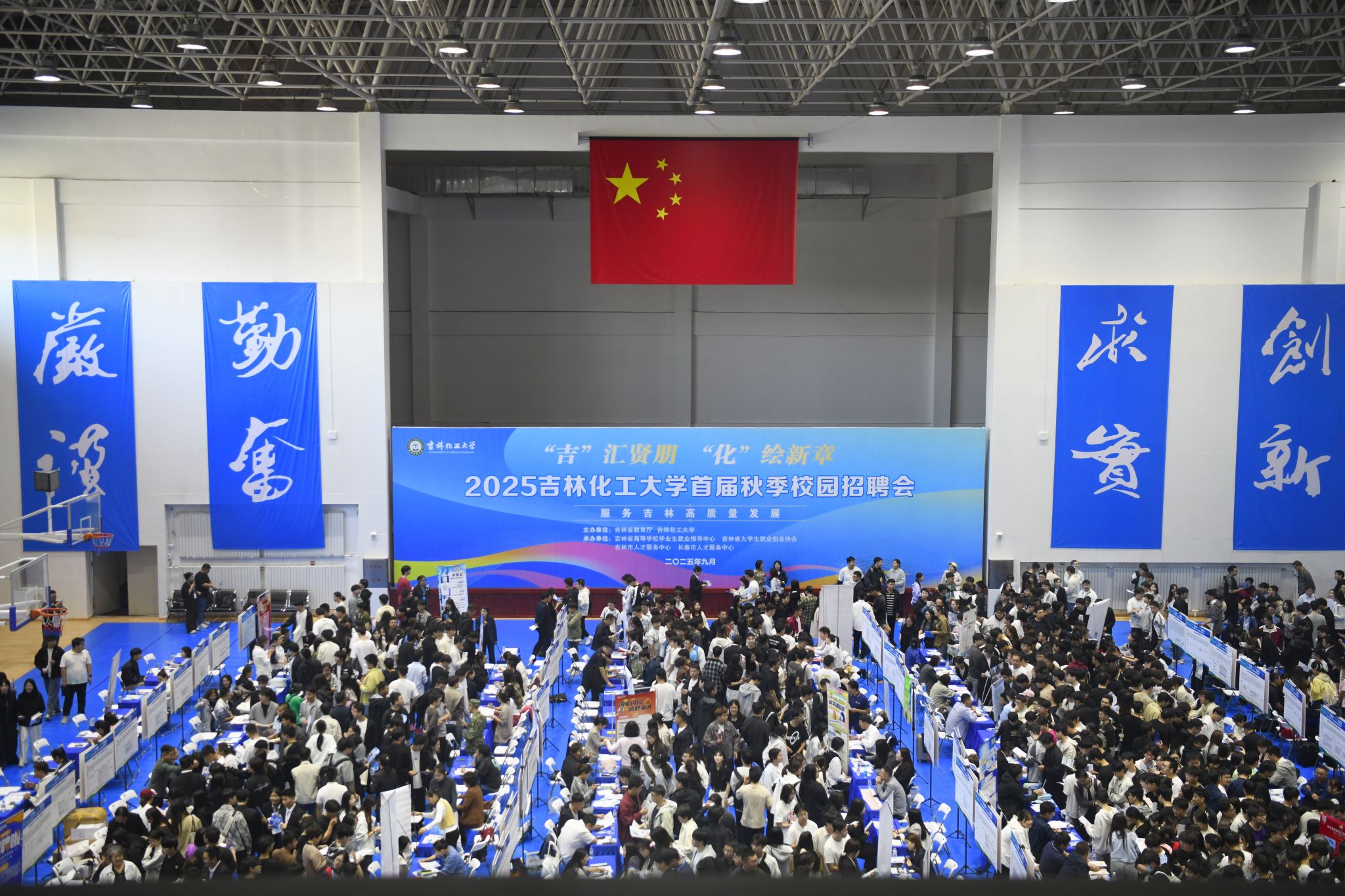 9月26日,2025年吉林化工大学首届秋季校园招聘会成功举办。本次招聘会是学校更名大学后举办的首场大型就业盛会,共吸引来自全国各地的129家知名企业汇聚一堂,为2026届毕业生带来涵盖化工、医药、教育、信息技术、金融、制造等多领域的优质岗位,助力2026届毕业生高质量充分就业。学校党委书记张明耀、校长艾学忠亲临招聘会现场与参会用人单位代表和学生深入交流,详细了解就业市场和企业需求,对毕业生就业工作提出明确的指导和要求。