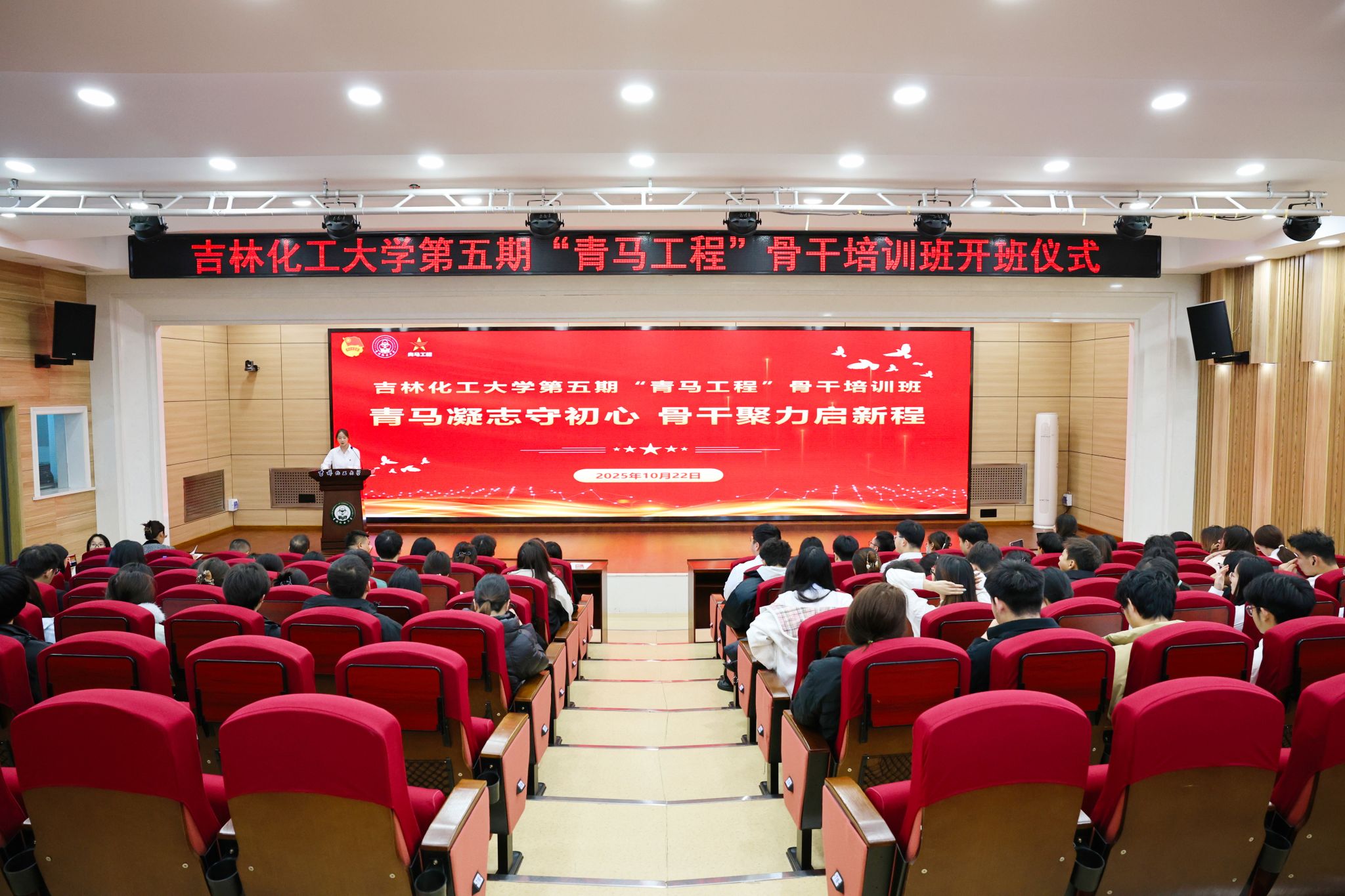 10月22日,吉林化工大学2025年第二期“青马工程”骨干培训班开班仪式在图书馆报告厅举行。
