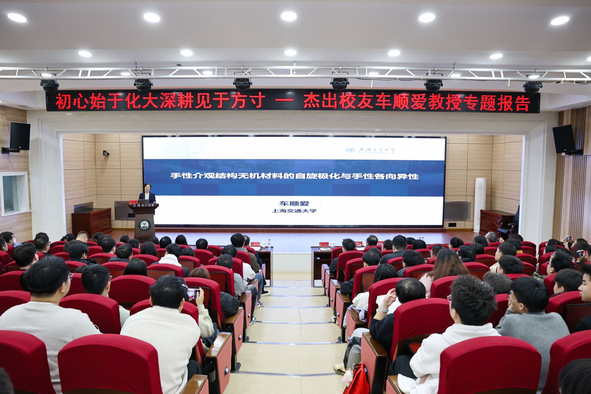 报告中,车教授以深入浅出的语言,引领师生走进微观“手性”世界的奇妙图景;并系统阐释了“手性诱导自旋选择性效应(CISS效应)”的基本原理;同时结合自身科研成果与国际前沿案例,生动展示了手性材料研究的发展脉络与未来趋势。