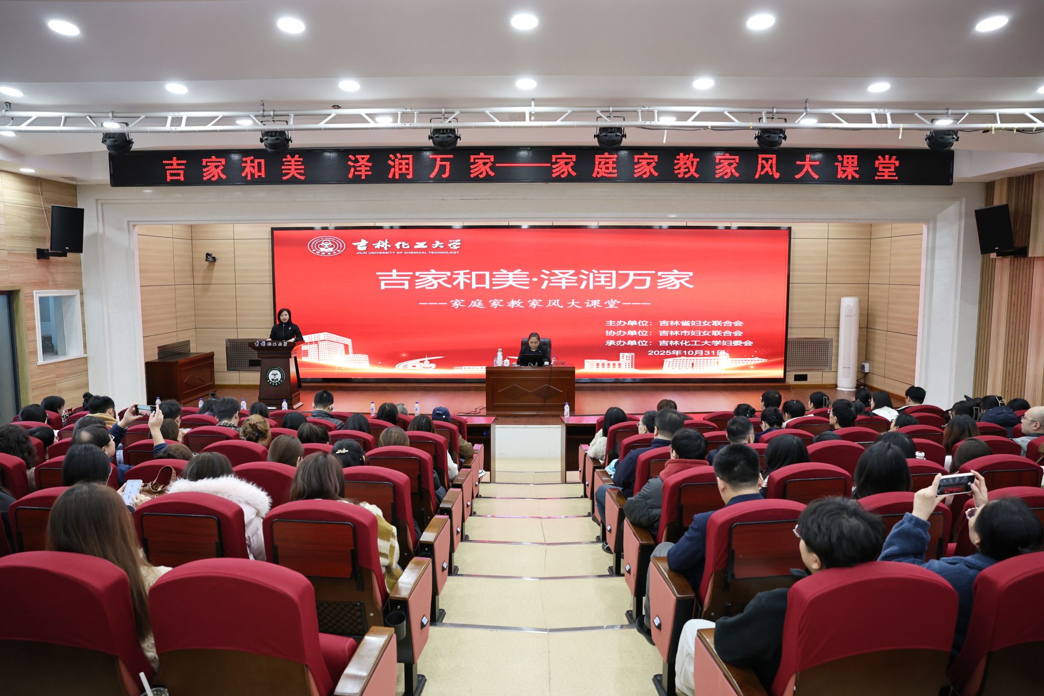 10月31日,学校在图书馆报告厅举办“吉家和美·泽润万家”家庭家教家风大课堂活动,深入传承中华民族传统家庭美德,筑牢家庭文明建设根基。本次活动邀请吉林省家庭教育学会副会长、吉林省婚恋导师团专家付广娟主讲,为教职工与青年学生群体分别作专题报告。