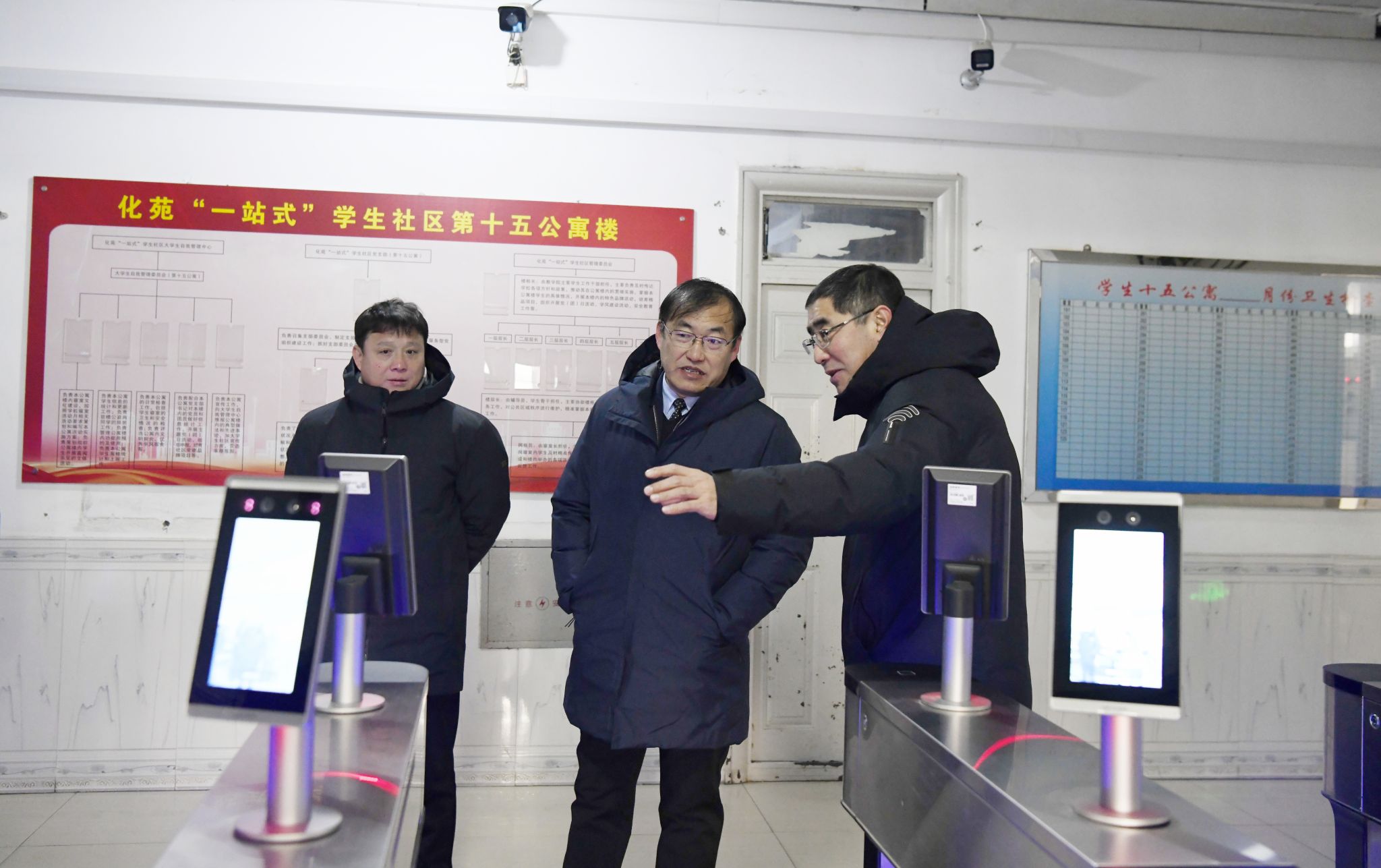 1月22日,学校党委书记张明耀、校长艾学忠带队深入学生公寓、教学楼、实验室、食堂等重点场所,实地检查校园安全工作,进一步压紧压实各方责任,全面筑牢校园安全防线。